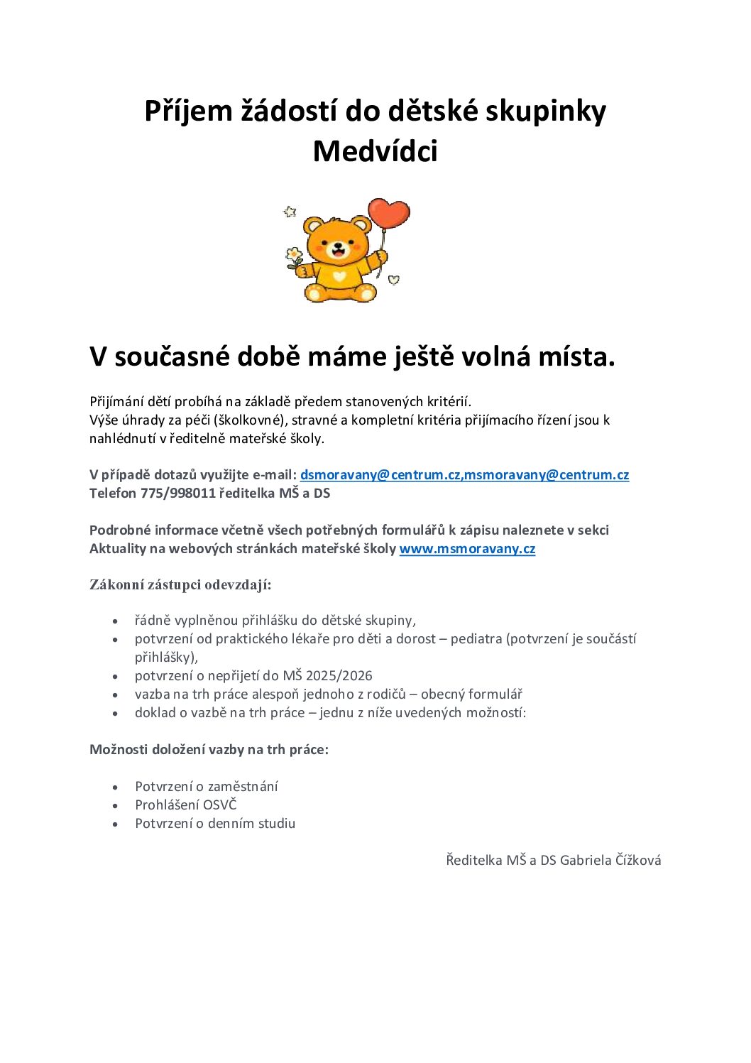 Je zde také mateřská škola, základní škola (1. – 9. stupeň), dětský i praktický lékař a zubní lékař včetně laboratoře. Díky dobré dopravní obslužnosti lze navštívit specialisty v Holicích (cca 20 minut vlakem) či v okresním městě Pardubice (15 – 16 minut), kde je i nemocnice a vše ostatní, co může stotisícové město nabídnout.